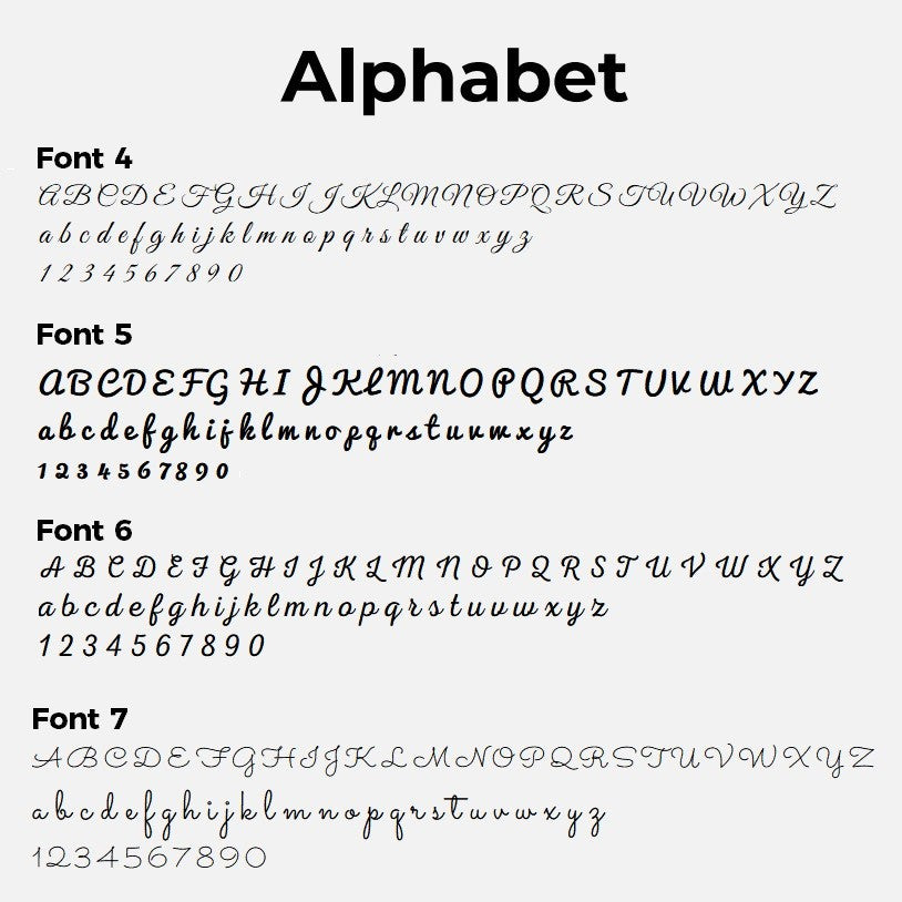 Silahkan masukan nama / tulisan yang ingin dibuat beserta pilihan font / icon pada saat memasukkan barang ke Keranjang. Contoh: ‘Melissa - Font 1’ atau ‘Zodiac - Virgo’. Apabila ada yang ingin ditanyakan, silahkan menghubungi kami dengan mengklik tombol WA.
